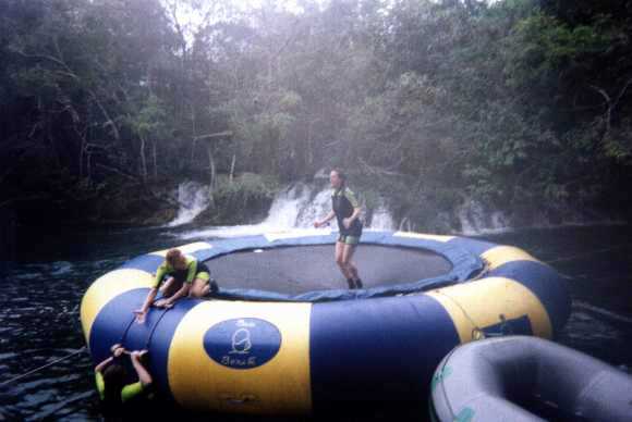 Muitos ohh!s, peixes e metros rio abaixo, terminava o passeio no aquário, sem antes descermos outra carretilha, esta um pouco mais radical e pularmos prá valer numa bóia com pula-pula no meio do rio. Diversão, como dizemos no interior de São Paulo, prá mais de metro!