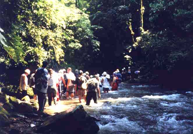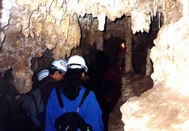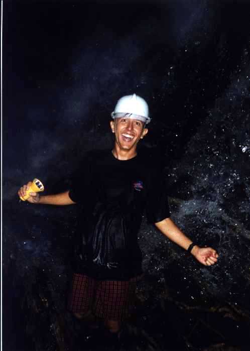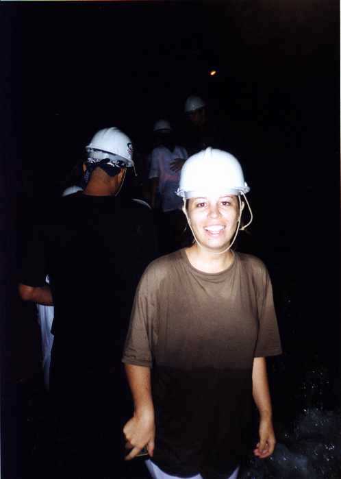 Ai, ui, tô travada! Sou sedentária mesmo... Só sei que o dia anterior me deu um tremendo baile... Estou completamente moida, arrasada, descabelada, mas...tuuuuuudo bem, levantei e fui tomar café. Peguntei para um guia se daria para ir de shorts na próxima caverna e ele disse que sim....e eu fui. Fomos para a caverna " (Que eu não lembro o nome) ". Olhe, ela era bem difícil...tirando o exagero, dava para se complicar um pouquinho. Ela tinha muito lama o que fazia com que eu escorregasse pra caramba nas pedras. Mas a emoção veio no final. Teriamos que passar por uma parte com água. Só que não daria pé lá. Amarraram uma corda pelo caminho só que tivemos um probleminha. O Cute (ou Marcos para os não íntimos) não sabia nadar e acabou quase se afogando. O Fabrício e o Americano ajudaram e quase não deram conta, mas...no final deu tudo certo e acabamos até rindo da história.