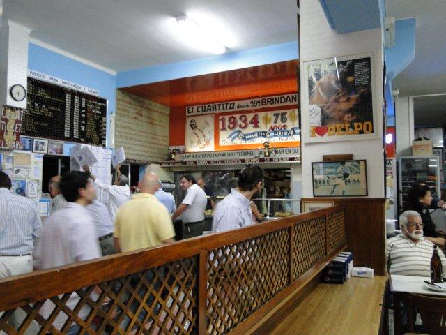 Em Buenos Aires, o legal é comer nos cafés, que são na verdade restaurantes. A gente ouviu falar do El Cuartito no programa do Anthony Bourdain e foi lá conferir a empanada. Lógico que a Bia fez o possível para que não fosse esquecida por um minuto sequer mas, apesar disto, a empanada ( assada, não frita! ) estava deliciosa.