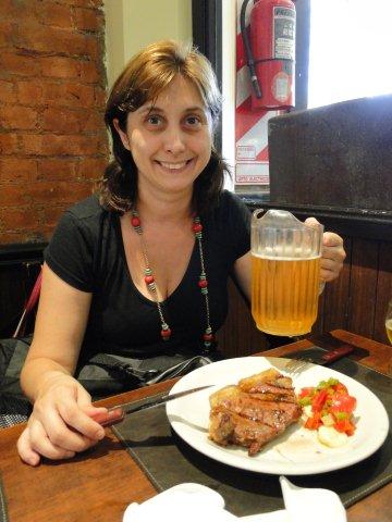 E, desta vez, o prêmio Almoço Farto em Buenos Aires vai para o Siga La Vaca, em Porto Madero. Com cerca de R$ 32,00 por pessoa, você tem direito a comer o quanto aguentar de carne ( não é rodízio, você vai lá e, se quiser, só come chorizo ou costela! - os churrasqueiros já conhecem os nomes pelos quais os brasileiros chamam os cortes de carne, então, não se avexe... ), escolhe do quê eles vão encher a jarra de um litro que você tem direito ( a minha de pomelo, a do Pipe de Coca e a da Mon de chopp) e ainda reserva um espaço prá uma sobremesa deliciosa, escolhida na carta. Claro, se você quiser comer do buffet, pode. Só não espere encontrar arroz...