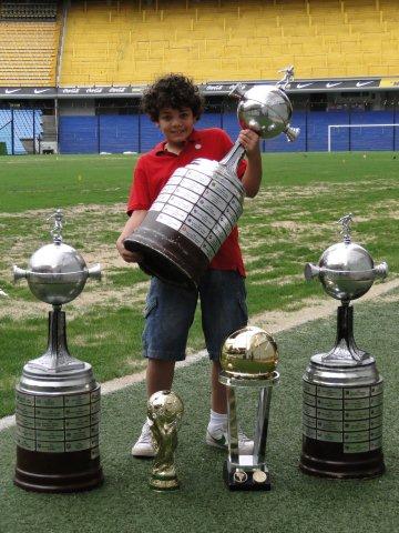 Fomos à Bombonera, eu o Pipe e a Bia. O tour pelo estádio é kitsch, mas imperdível. A cara do Pipe tirando foto com a taça Libertadores na mão é ótima.