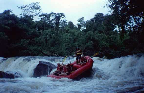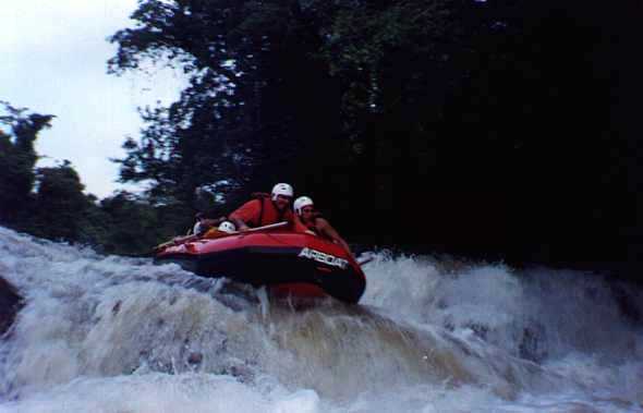 No começo, tudo errado. O barco não correspondia, a gente errava os comandos, mas antes da primeira queda já estávamos afiados! E lá vai uma, duas quedas, uma corredeira, uma guerra de água com o barco ao lado, muitos e muitos encalhes.