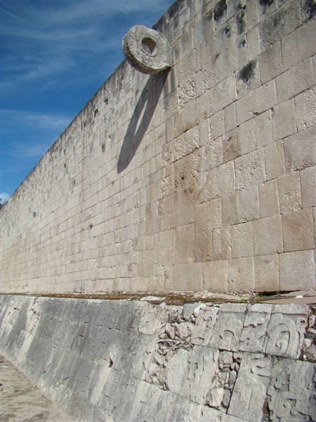 Ainda tem o estádio do jogo de pelota! Os guerreiros, divididos em dois times, emperravam a bola com os quadris e tentavam fazê-la passar por umas argolas situadas a coisa de cinco metros de altura. Uma mistura de futebol e basquete e... bom, o capitão do time vencedor tinha um prêmio um tanto esquisito para nossos padrões: ele era decapitado. Sua morte faria com que as colheitas fossem boas, os furacões dessem um tempo e o mundo não acabasse. Para os outros, porque para o pobre jogador o mundo já era.