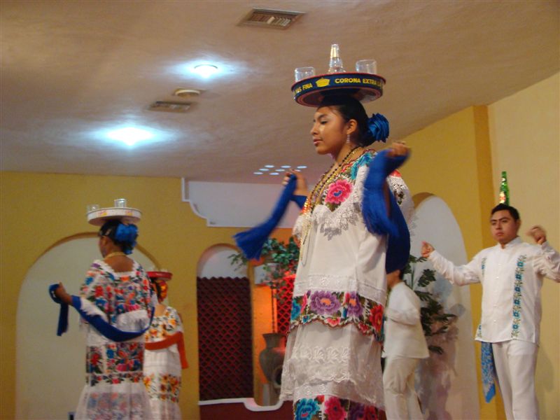 Já era meio dia e a despeito dos pedidos do guia, eles continuaram no cenote, nadando e brincando como se só eles estivessem de férias. O guia então tomou a única atitude cabível: seguiu viagem. Chegamos no restaurante, almoçamos assistindo um grupo de dança tradicional que dançava com garrafas, às vezes bandejas com mais de uma garrafa, de tequila equilibradas na cabeça e a família-simpática-dona-do-mundo chegou. O pai, um americanão com o dobro do tamanho do guia apontava-lhe o dedo e o ameaçava gritando. Todos os outros turistas, nós incluídos, ignoramos a família mal educada, terminamos nossa refeição e voltamos para o ônibus.