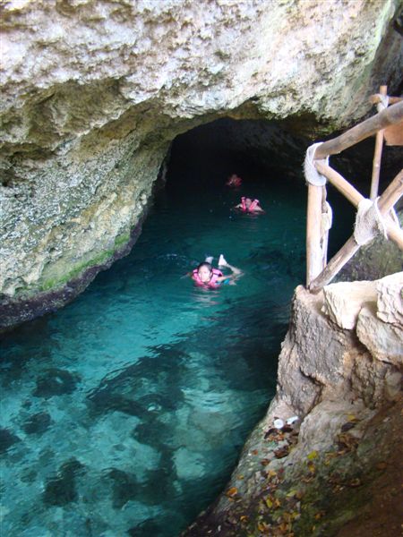 Fomos fazer o passeio pelos rios subterrâneos, onde você utiliza uma máscara, um pé de pato, um colete e um snorkel e desce cerca de setecentos metros de um rio que a maior parte do tempo corre dentro de uma caverna! às vezes, você não vê nada e fica com medo de dar uma cabeçada na pedra, mas isto não acontece não... É muito bacana e dá vontade de fazer de novo, mas só pode uma, então...
