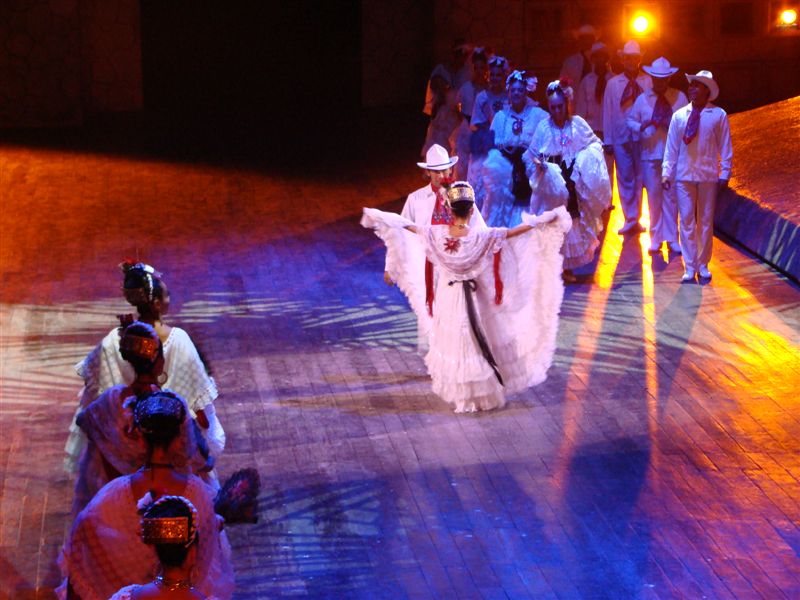 Começa uma menininha a cantar, depois aparecem outros personagens e vão contando e cantando a história do México, desde os antigos maias, passando pela invasão espanhola e mostrando os estilos musicais contemporâneos. Um show prá ninguém botar defeito, com toda a música performada ao vivo e um espetáculo de cores, sons e lendas que deixam a todos de boca aberta e com cara de feliz. Os mexicanos, principalmente, urravam a cada manifestação patriótica dos personagens e todos, sem exceção, torciam como se estivessem em uma partida de futebol na demonstração dos jogos de pelo maia e de bolas de fogo. Cada gol era comemorado, independente se entrasse no gol de Xcaret ou no de Chichen-Itza!