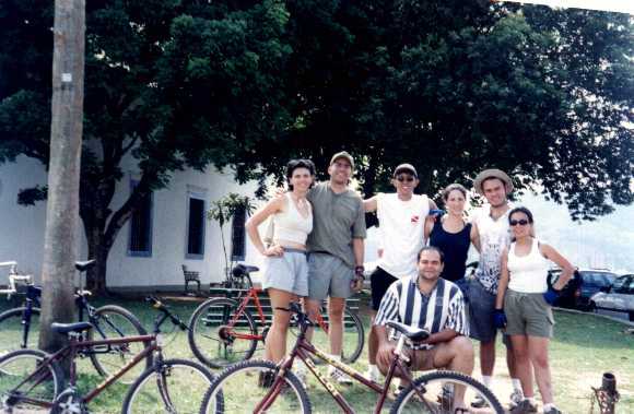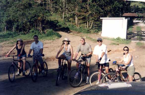 O Luiz então chegou com a idéia de acamparmos em Cunha, entre Guaratinguetá e Paraty, num sítio de um amigo dele, onde a gente teria um prato bem variado de opções de aventura. Definido o local, começamos a ver quem vai, quem não vai, e quem foi: Eduardo Valente (myself), o Luiz, a Rita e o Eduardo Alvarenga, a Lígia, a Esli e o seu namorado Marcelo. Em três carros abarrotados de mantimentos e bicicletas, fomos preparados para o que desse e viesse.