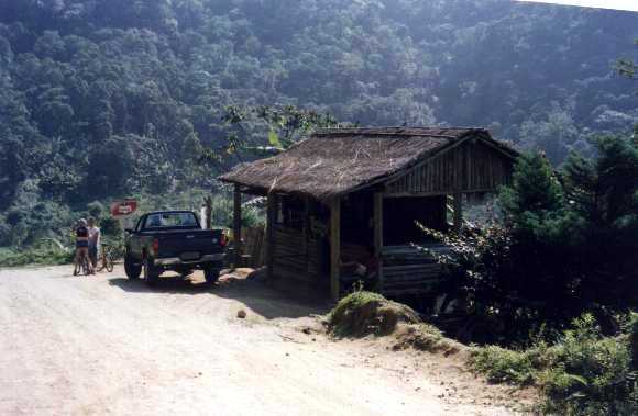 E lá vamos nós! Chegamos em Cunha lá pelas onze e meia, ainda sem fome e rumamos para o sítio, cerca de vinte quilômetros da cidade. foi quando eu comecei a ficar preocupado com a saúde do meu carro, urbano e pesado demais para aquelas roubadas... Depois de algumas raspadas no assoalho, paramos no meio do sítio, sem saber ao certo onde acampar. Decidimos por um local perto de uma bica, com uma sombra gostosa de uma árvore a nos proteger do solaço que fazia...
