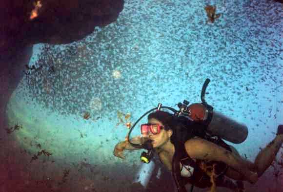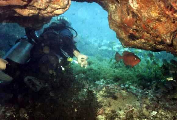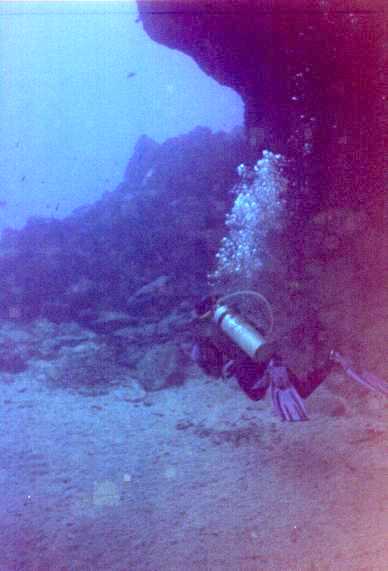 Chegamos à caverna, e fomos até onde já não tinha mais luz a não ser a da boca da caverna, a uns quinze metros. Tiramos algumas fotos na contra-luz da abertura e saímos logo dali, porque o ar começava a acabar. Após 40 minutos de mergulho, voltamos ao barco.