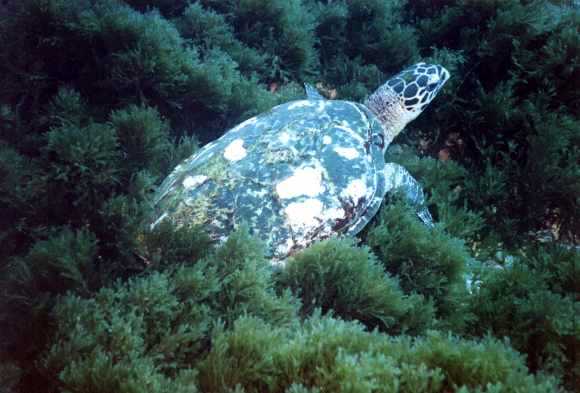 De repente, a Zaira, que estava guiando, tira o regulador da boca e grita sem som: tartaruga! Todo mundo voando prá lá, tirando muitas fotos da pop-star-taruga (permitam-me o trocadilho, eu não resisti...). Legal demais, ela ficava visivelmente contrangida com tanta atenção... Trinta e cinco minutos depois, chegando a vinte metros, terminara o nono mergulho da série.