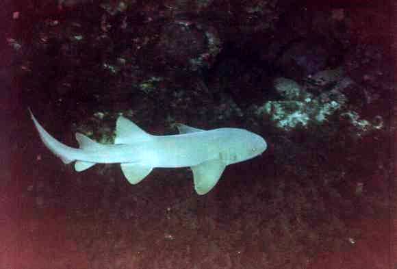 Nem cinco minutos de fundo e o sinal de tubarão no visual estava dado! Um bico-fino passou como quem não quer nada a cerca de quinze metros da gente. Seguimos entre barracudas e arraias e nenhum outro tubarão, por um mar que condizia com a superfície, cheio de correntes e mexido pelas ondas, o cardume de mergulhadores seguia de lá prá cá, desistindo de lutar contra o mar. Chegamos a vinte metros e o mergulho durou quarenta minutos...