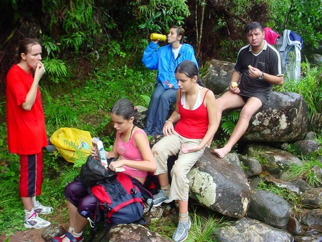 O guia Oscar estava desconsolado. "Este lugar é tão bonito com sol... Com chuva chega até a ser perigoso!". E estava perigoso mesmo... Não ficamos nem uma hora ali e já corremos de volta à floresta, que pelo menos nos abrigava um pouco mais, já que lugar seco não havia mesmo.