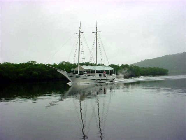 A escuna que não colaborava! Lenta, cheia de fumaça fedida e barulhenta! Ela tinha sido contratada na véspera, porque uma das escunas "titulares" tinha quebrado e tinha muita gente querendo chegar na ilha. O barqueiro, que devia estar com mais sono que qualquer um, ia em primeira marcha, em meia marcha, quase que a velocidade de remo, e toda a gente começando a ficar impaciente...