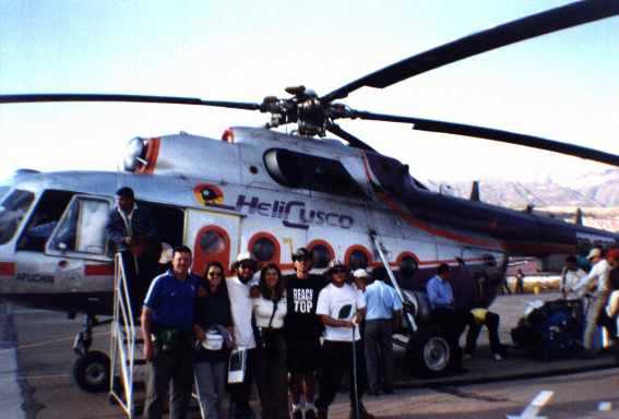 Almoçamos num dos restaurantes ao lado da linha de trem, vimos o empurra-empurra para pegar o dito-cujo, que ia entupido de gente e andamos até o heliporto, para darmos uma de gente chique e voltar a Cusco de helicóptero.