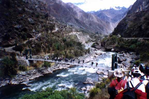 Acompanhávamos o rio Cusichaca... Tardezinha e já estávamos em Wayllabamba, com nossas barracas já montadas pelos porteadores, os carregadores que no Himalaia atendem por sherpas e que carregam muito peso em suas costas, em troca de poucos dólares.