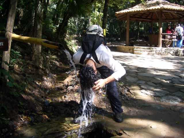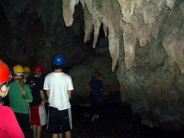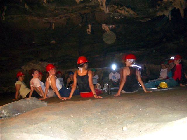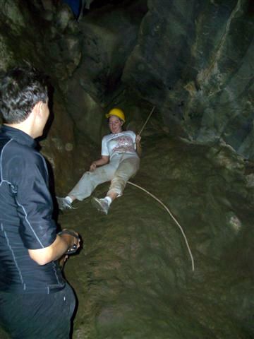 Descemos num salão imenso, depois subimos, depois descemos, depois subimos de novo, depois chegamos num túnel bem apertado, que você desce de costas no chão e com a cara a menos de cinco centímetros do teto, somente com uma corda prá te dar apoio. Por incrível que pareça, ninguém deu vexame!