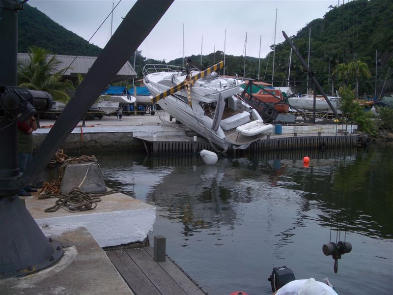Gastamos a tarde lá, clima agradável, dia prá ficar de bobeira à beira-mar. Vendo os veleiros atracados e acompanhando o desespero de um dono de veleiro que o guindaste não deu conta de levantar e derrubou-o no pier. O veleiro de 18 toneladas jazia com o fundo partido e o guindaste em cima, tendo vazado todo seu combustível ( vimos a mancha lá do mirante! ) e o dono que não tinha chegado ainda, desesperado porque o Natal e o Ano Novo tinham ido literalmente afundado. As seguradoras do guindaste, do clube e do barco devem estar brigando até hoje...