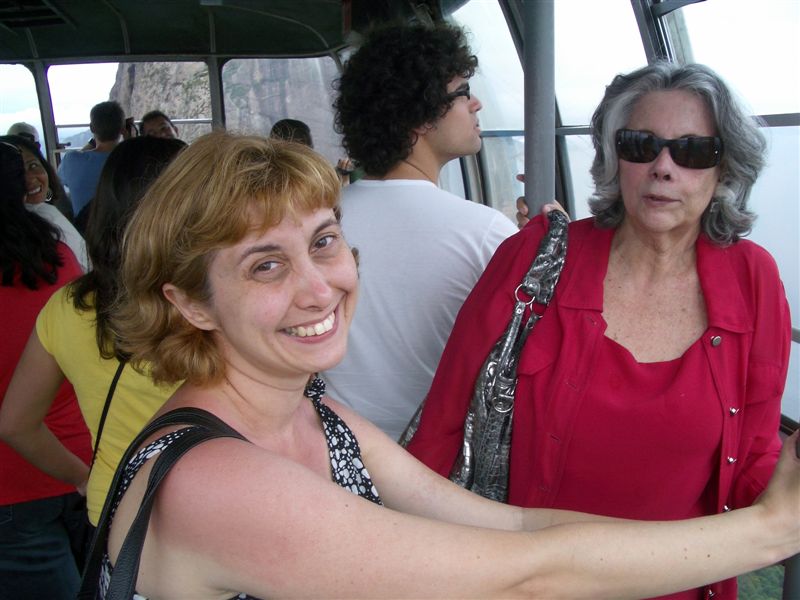 Depois, já devidamente reabastecidos, fomos ao Pão de Açúcar. O tempo continuava me impedindo de levar a Monserrat para Jesus, então ficamos com o morro mais baixo. Pagamos as entradas ( achei caro os R$ 44,00 por pessoa!!) e tomamos o bondinho, com a Mon fechando o olho por medo de altura. E eu e a Ângela rindo muito desta paúra...