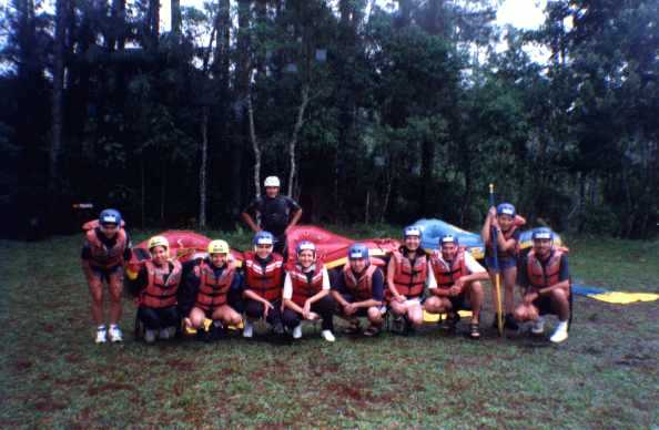 Com algumas desistências, entramos em cinco botes e começamos a curtir as seis horas de adrenalina. No meu estavam além de mim, o Régis, a Loo, o Lee e o casal Roberto e Marina. Enfim, éramos seis, e tudo gente fina...