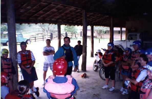 Foi o Régis que nos instruiu com os tipos de manobras que precisaríamos saber, as ordens de comando, etc. Aliás, o Régis era um dos guias nossos nesta aventura. Me parece que era campeão brasileiro de alguma modalidade... Frente forte, esquerda ré, direita ré, piso, peso à esquerda, parô, enfim, um monte de comando prá gente ir aprendendo e se preocupando em fazer certinho.